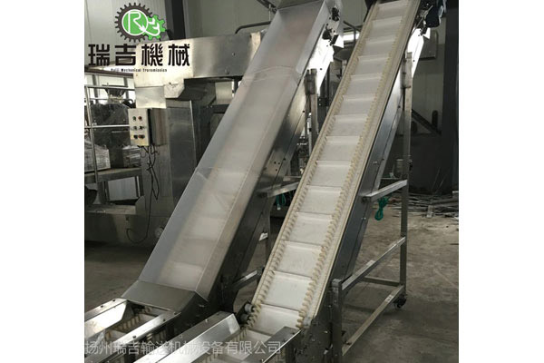 在輸送帶上增設(shè)提升擋板、裙邊等附件,能滿足顆粒物以及粉體的提升工藝要求。輸送機(jī)兩側(cè)配以工作臺(tái)、加裝燈架,可作為電子儀表裝配線,食品包裝線等。