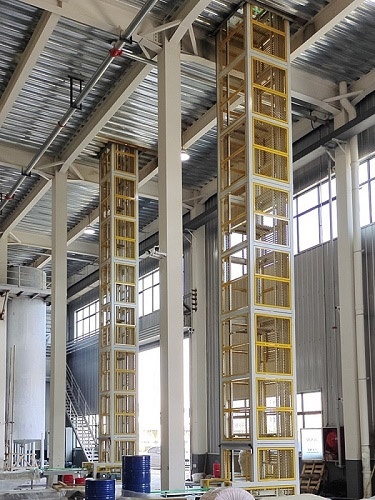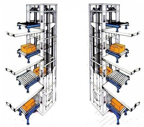 C型托盤式垂直提升機(jī)主要是根據(jù)輸送形式為垂直提升而得名,由設(shè)備框架、傳動(dòng)軸、鏈輪、傳動(dòng)鏈條及組合式托盤、承載鏈條等組成,全程采用該分子耐磨導(dǎo)軌導(dǎo)向,具有占地面積小、提升速度快、噪音低、安全可靠等特點(diǎn);主要應(yīng)用于紙箱、塑料周轉(zhuǎn)箱、油桶、棧板等固態(tài)元件的垂直提升輸送;按照進(jìn)料口出料口的方向分為Z型垂直提升機(jī)和C型垂直提升機(jī)兩種。 Z型出入口分別位于設(shè)備的兩邊,C型垂直提升機(jī)的出入口位于同一側(cè);