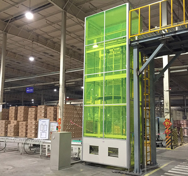 往復(fù)式垂直提升機(jī)又稱為往復(fù)式升降機(jī)或托盤提升機(jī),是由鏈條帶動(dòng),通過變頻調(diào)速控制電機(jī),便提升轎廂上下往復(fù)運(yùn)動(dòng).提升轎廂上配有傳動(dòng)機(jī)構(gòu),以便被輸送物自動(dòng)進(jìn)入提升機(jī)的提升轎廂上。該類提升機(jī)具有自動(dòng)化控制、性能可靠、提升轎廂定位準(zhǔn)確等特點(diǎn)。