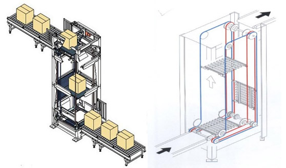 垂直提升機(jī)主要應(yīng)用于紙箱、塑料周轉(zhuǎn)箱、油桶、棧板等固態(tài)元件的垂直提升輸送;按照進(jìn)料口出料口的方向分為Z型垂直提升機(jī)和C型垂直提升機(jī)兩種。 Z型出入口分別位于設(shè)備的兩邊,C型垂直提升機(jī)的出入口位于同一側(cè);