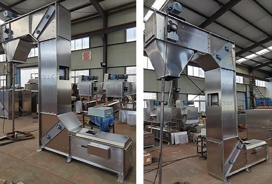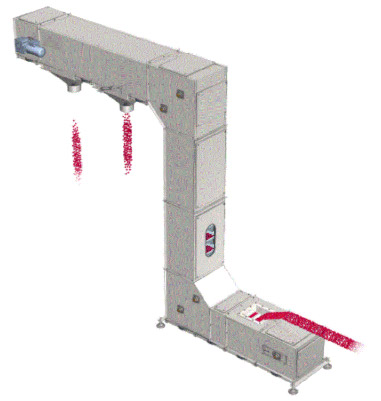 斗式Z型提升機(jī)是我司設(shè)計(jì)制作的斗式提升機(jī)系列產(chǎn)品中的一種,根據(jù)進(jìn)、出料口位置的不同而型似字母Z字得名;設(shè)備采用封閉式結(jié)構(gòu),避免了跑冒滴漏的生產(chǎn)缺陷,通過在兩側(cè)閉環(huán)鏈條上安裝料斗,使得料斗能夠在任意位置隨意設(shè)定旋轉(zhuǎn)位置;可以在任意位置滿足多點(diǎn)卸料的要求,既可以提升顆粒及小塊狀物料,也可以提升含粉量低于25%的混合型物料,提升高度可以達(dá)到20米,提升量15立方/小時(shí);新款Z型斗式提升機(jī)料斗采用了較老款料斗更加柔性化的設(shè)計(jì),全程超高分子導(dǎo)軌及鏈條摩擦塊,在提升高度較高時(shí)配備了逆止裝置及電子檢測(cè)裝置、斷鏈保護(hù)裝置、鏈條自動(dòng)張緊裝置,使得設(shè)備性能可靠性得到了提升;鏈條采用了具有較高強(qiáng)度的輥?zhàn)渔?,在料斗的尺寸上延續(xù)了我們的PP塑料料斗的特點(diǎn),料斗容積有3L和8L可選;我們可以結(jié)合腐蝕、高溫等要求,可非標(biāo)定制碳鋼、不銹鋼等金屬料斗,目前我司生產(chǎn)的Z型斗式提升機(jī)在化工、塑料、糧食、寵物食品、膨化食品、休閑食品、再生資源、五金、化工等行業(yè)得到了廣泛的應(yīng)用;
