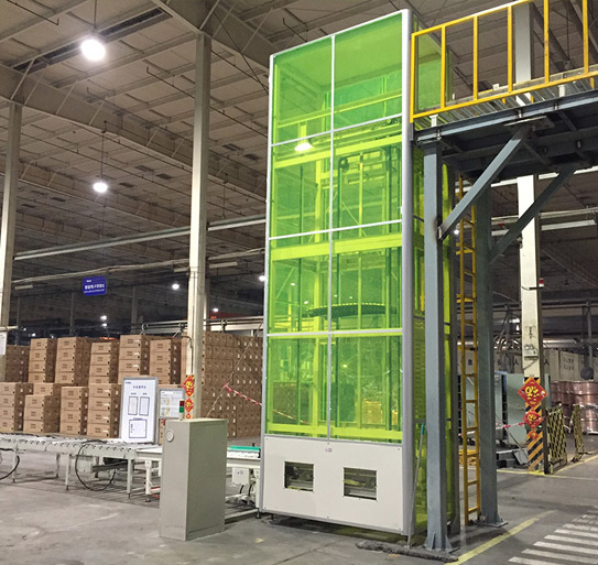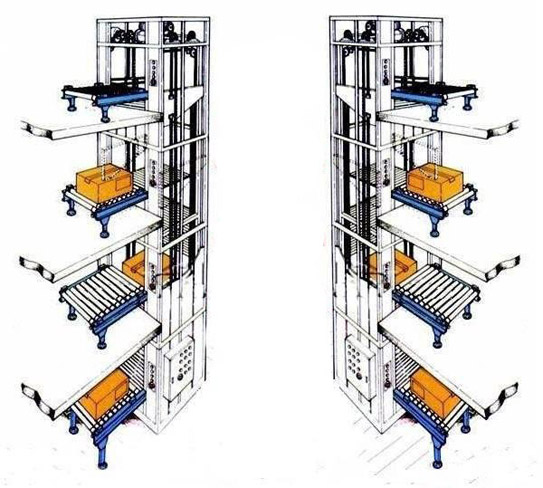 連續(xù)式托盤Z型提升機(jī)的叫法主要是根據(jù)輸送形式為垂直提升而得名,又稱為:連續(xù)式托盤提升機(jī),托盤式垂直提升機(jī),由設(shè)備框架、傳動(dòng)軸、鏈輪、傳動(dòng)鏈條及組合式托盤、承載鏈條等組成,全程采用該分子耐磨導(dǎo)軌導(dǎo)向,具有占地面積小、提升速度快、噪音低、安全等特點(diǎn);垂直提升機(jī)主要應(yīng)用于紙箱、塑料周轉(zhuǎn)箱、油桶、棧板等固態(tài)元件的垂直提升輸送;按照進(jìn)料口出料口的方向分為Z型垂直提升機(jī)和C型垂直提升機(jī)兩種。 Z型出入口分別位于設(shè)備的兩邊,C型垂直提升機(jī)的出入口位于同一側(cè);Z型相比較C型垂直提升機(jī)來講,提升量相對(duì)會(huì)大一些,Z型的提升速度可達(dá)20件/分鐘,C型可達(dá)10件/分鐘,具體速度需要根據(jù)物體尺寸確認(rèn);提升高度可達(dá)15米,單件物品的提升重量可達(dá)150KG;